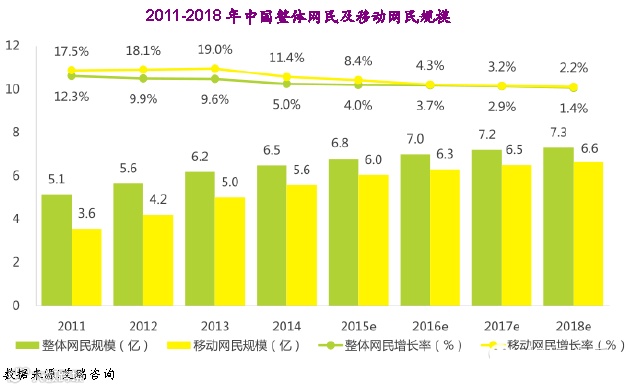 2014年,中国整体网民规模为6.48亿,其中移动网民达到5.6亿人,增长率为11.4%,移动网民增速远超过整体网民增速,中国整体网民的增长已经由PC网民增长完全转移到移动网民的增长。相对于无法实时随身携带的PC电脑,智能手机的便捷性注定会赢得更多的使用者。