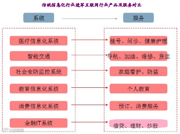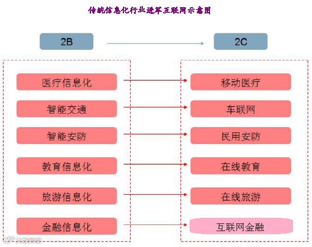 传统信息行业拥抱(移动)互联网。在以往,传统信息产业赢得高速发展的主要原因在于大量政策支持和鼓励、行业起点低以及相关行业固定资产投入投入。例如,铁路信息化上市公司的业绩就强相关于铁路固定投资,而酒店信息化公司的业绩受到新开酒店数量变化的影响。而为了摆脱以上这些限制,我们看到近年来传统信息化行业纷纷寻求转型和突破,而最佳的途径则是进入(移动)互联网打破行业边界,将2B业务变为2C业务。
