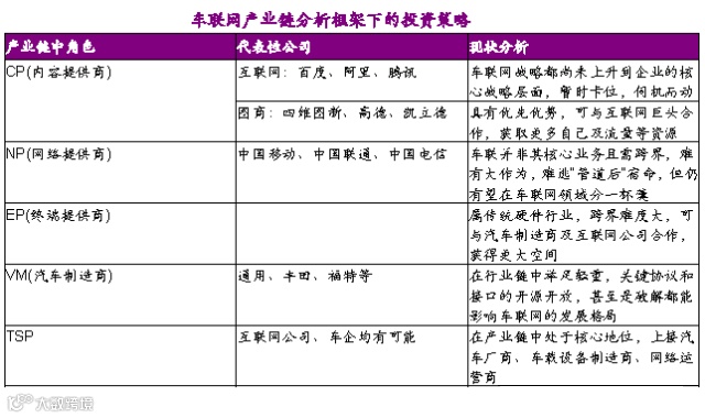 三、车联网:重点关注图商、服务提供商,大数据服务是重要发展趋势
