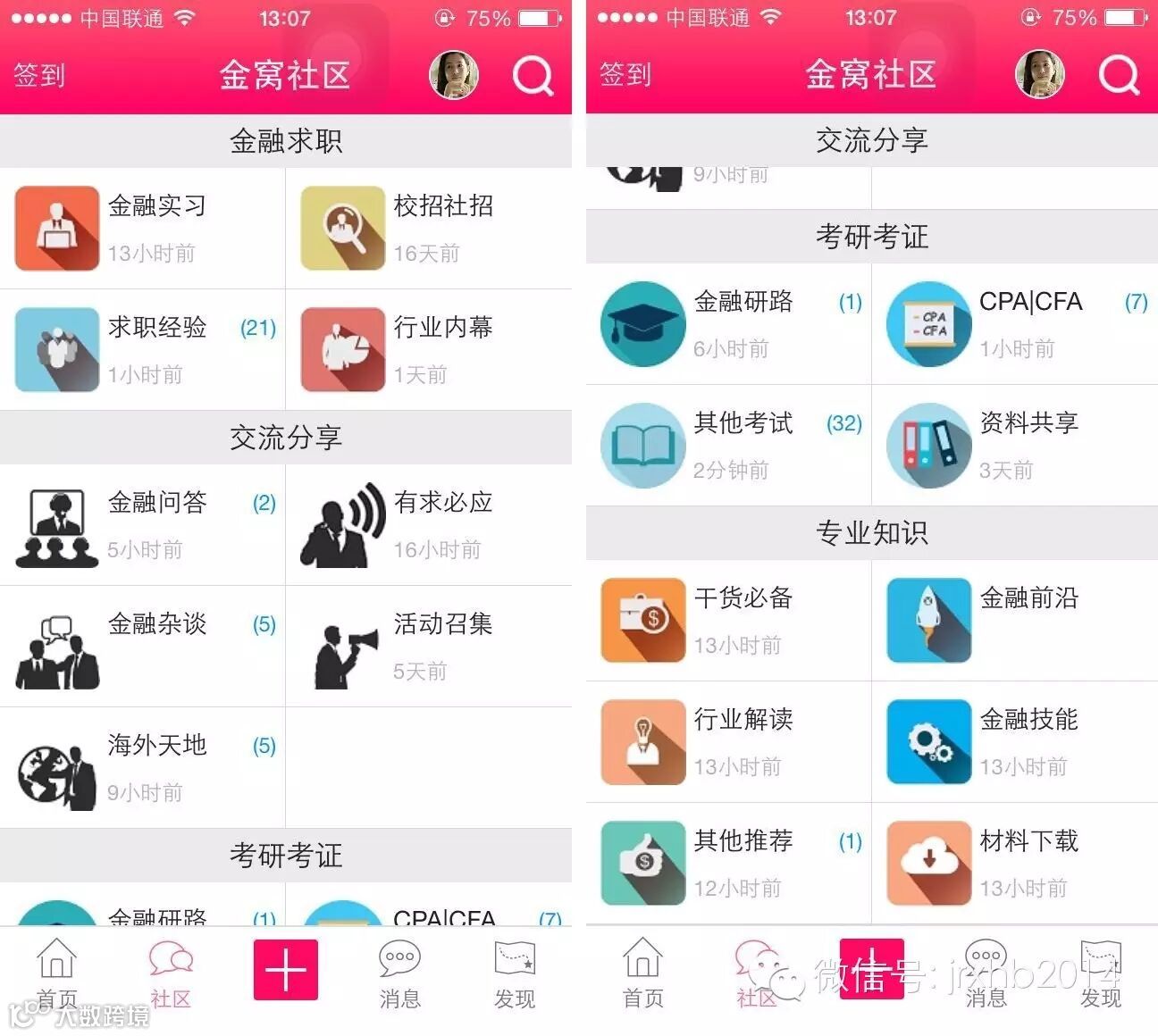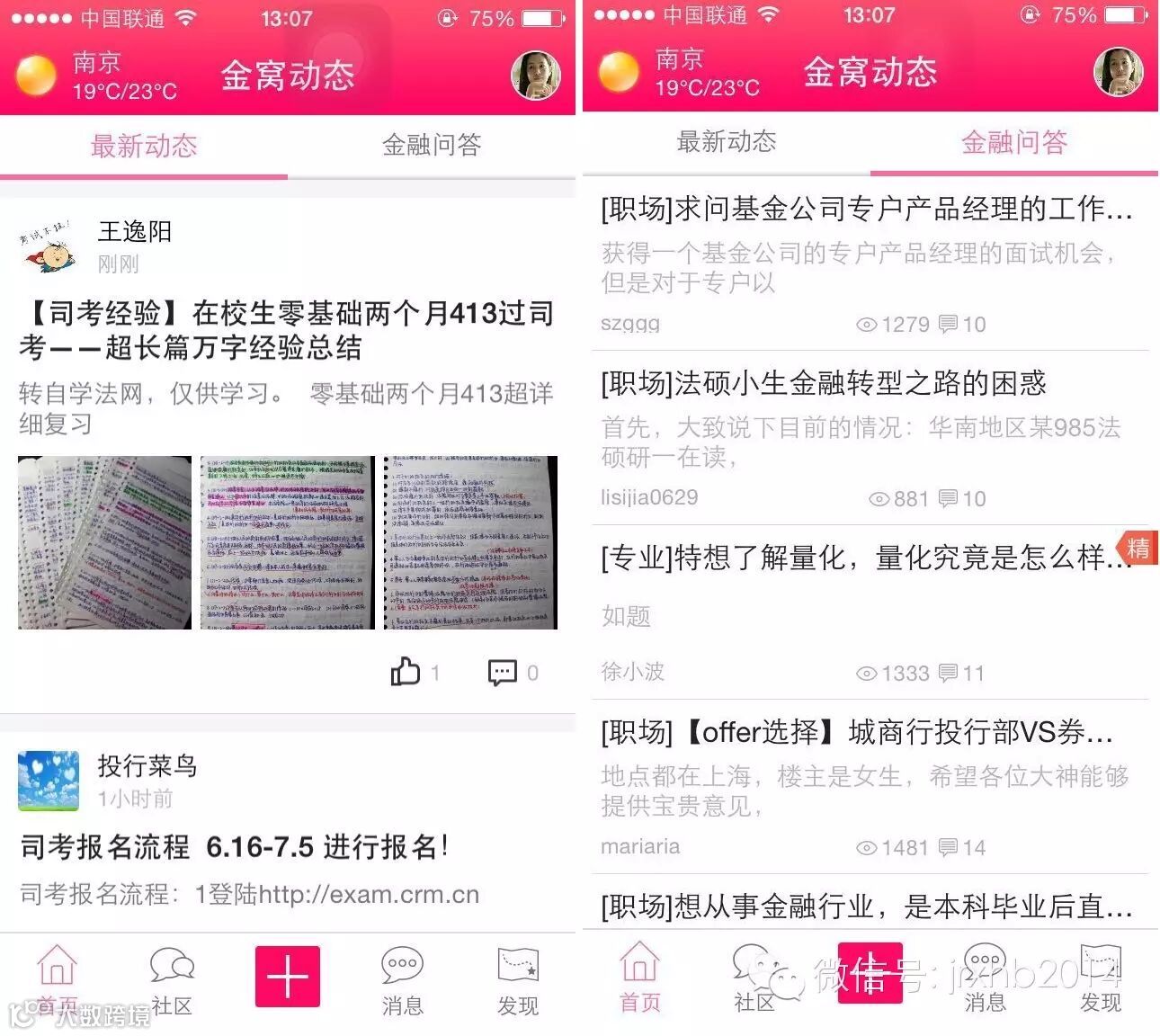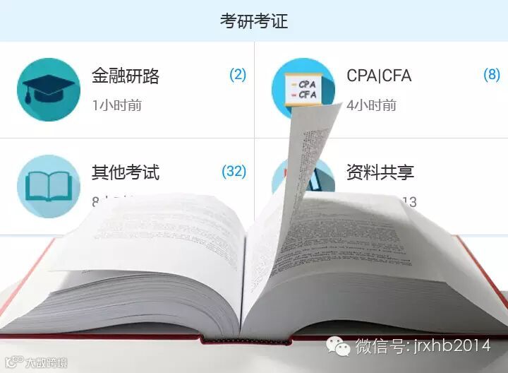 考研考证是在校金融经济领域学生最喜欢的板块之一。该板块从金融研路、CPA/CFA、其他考试、资料共享等方面对金融领域的考研考证进行了详细而有针对性的指导建议。金融研路详细介绍了许多著名金融类高校的考研信息,并且有许多已经考过研究生的网友发布的经验之谈。CPA/CFA板块是对于这两门的信息,及个人经验谈。而其他考试和资料共享则汇聚了关于金融相关的“证券从业”、“精算师”“ACCA”等考试的相关信息,并且有详细的各类考试的资料汇总。
