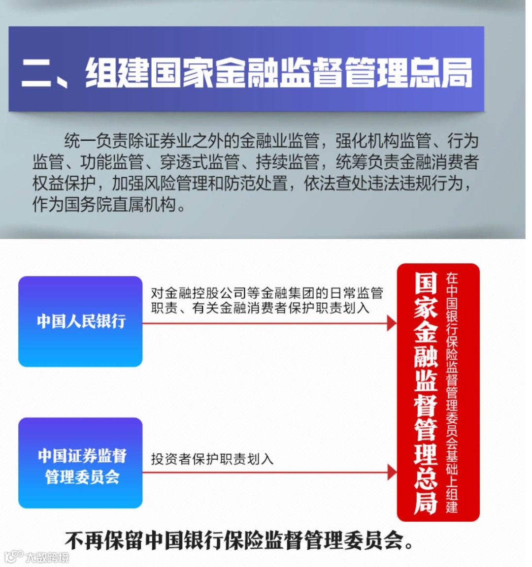 总的来说,此次改革旨在建立更加完善的金融监管体系,提高监管的效能和水平,有助于稳定金融市场、保护金融消费者权益、防范金融风险、促进金融业的持续健康发展。