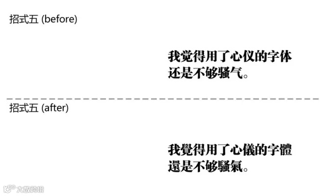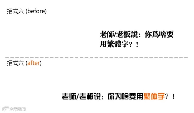 解读:觉得效果还是不理想的时候可以考虑换换繁体字,不过很多时候会带来阅读的不便和领导的质疑。