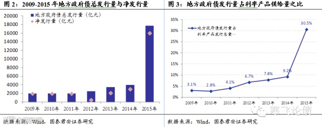 从2009年发行以来,地方政府债发行整体仍受严格控制,每年增长较慢,2014年发行量为4000亿,占利率债总供给量9.2%。截止2015年4月,存量地方政府债规模为1.16万亿,占未偿付利率债存量的5.63%。