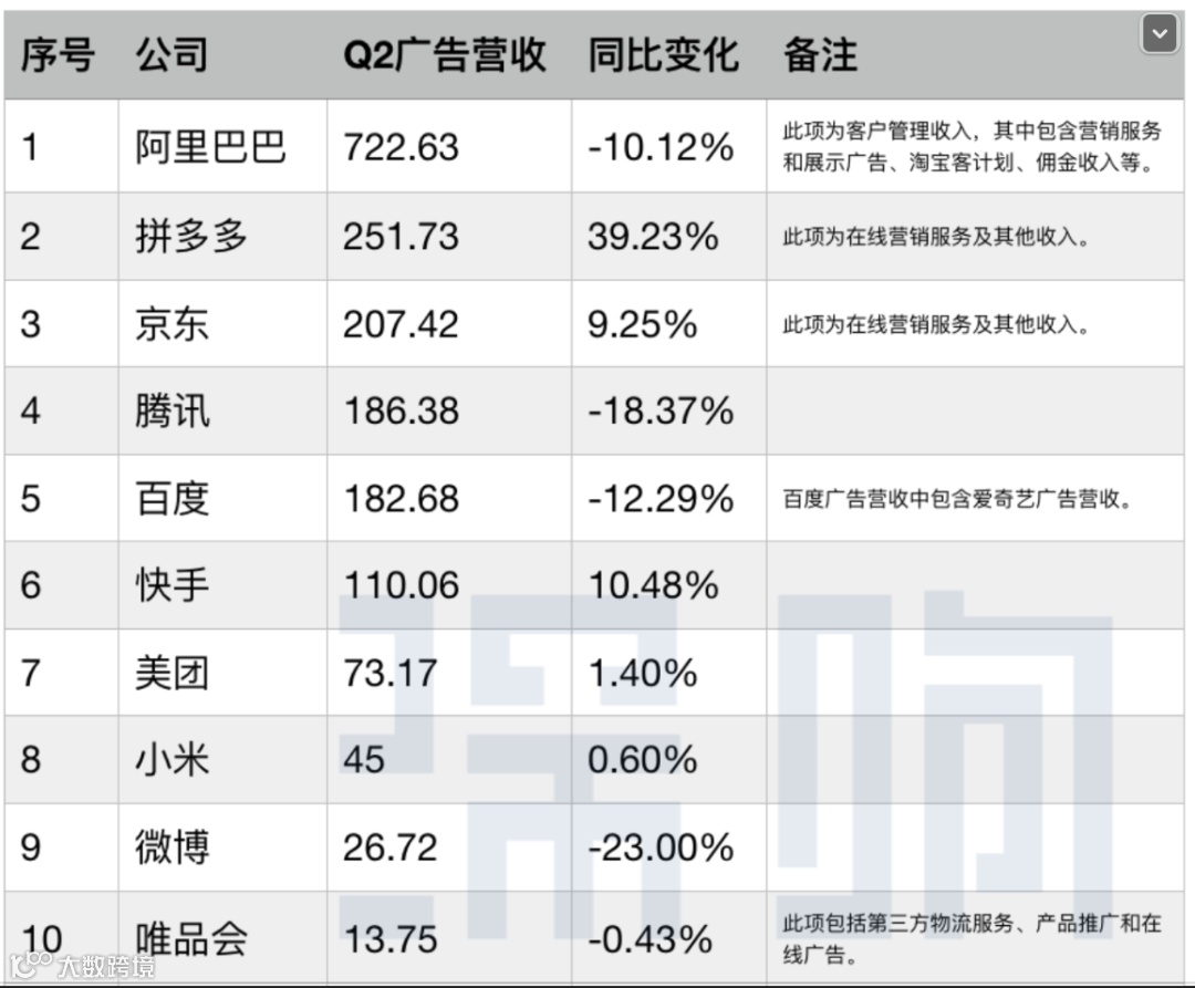 上图给出的是2022年Q2上市的互联网企业的广告业务排名,我们看到电商、游戏企业的流量变现已经超越了传统广告巨头百度。