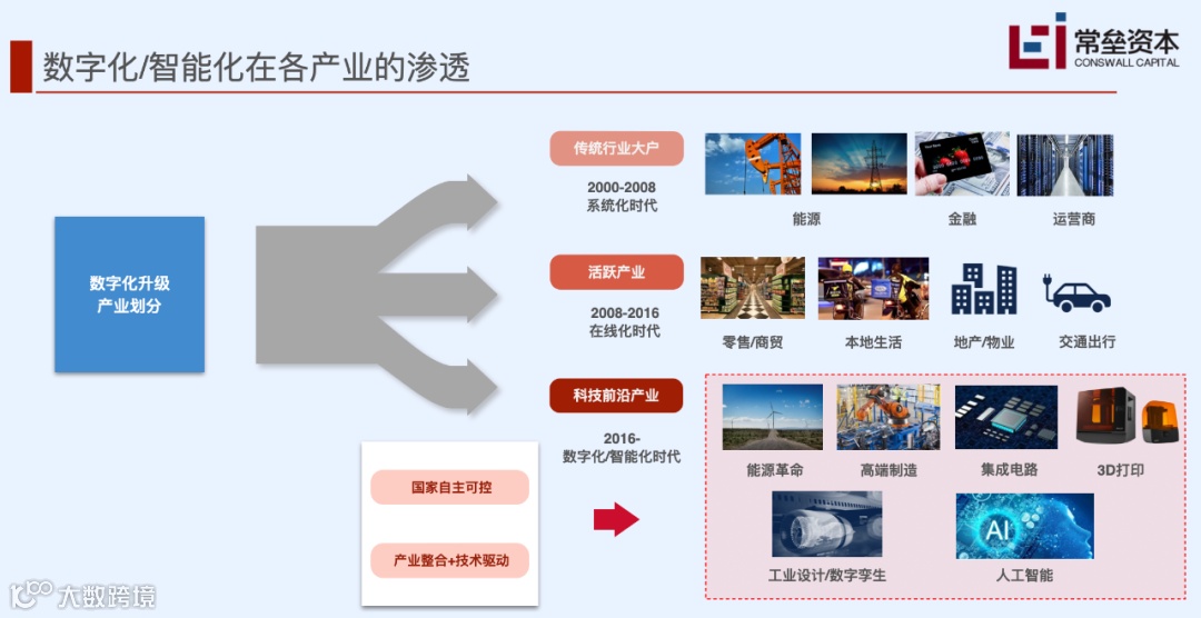 数字化/智能化驱动是我们关注的焦点,我们每天思考的就是如何将数字化/智能化跟中国的核心产业进行结合。这个领域属于第三产业,美国当之无愧地走在了最前列,这也是美国最发达的产业。尤其是最近ChatGPT取得的突破,引起了产业内对于智能化发展的新讨论。