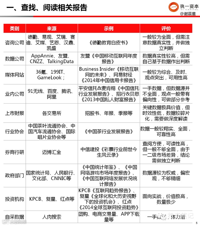 1、咨询公司,如易观、艾瑞等,研究一般较为全面,但需确认数据真实性,并作独立判断;