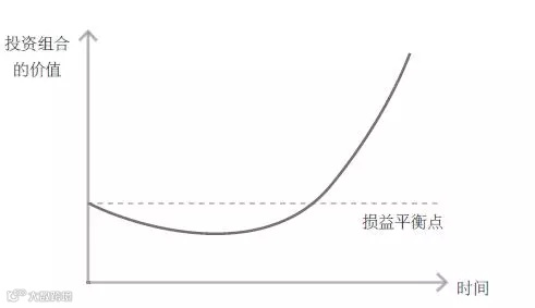 风险投资家的任务是鉴定那些刚起步的前景光明的公司,投资这些公司并从中获利。但是大部分公司通常刚起步就失败了,所以风险投资基金一开始都会亏损。当投资组合里有成功的公司进入了指数级增长期,并且开始扩大规模时,风险投资家希望投资基金的价值能在几年的时间内得到极大的提升,达到收支平衡,甚至收入大于支出(见图 1)。