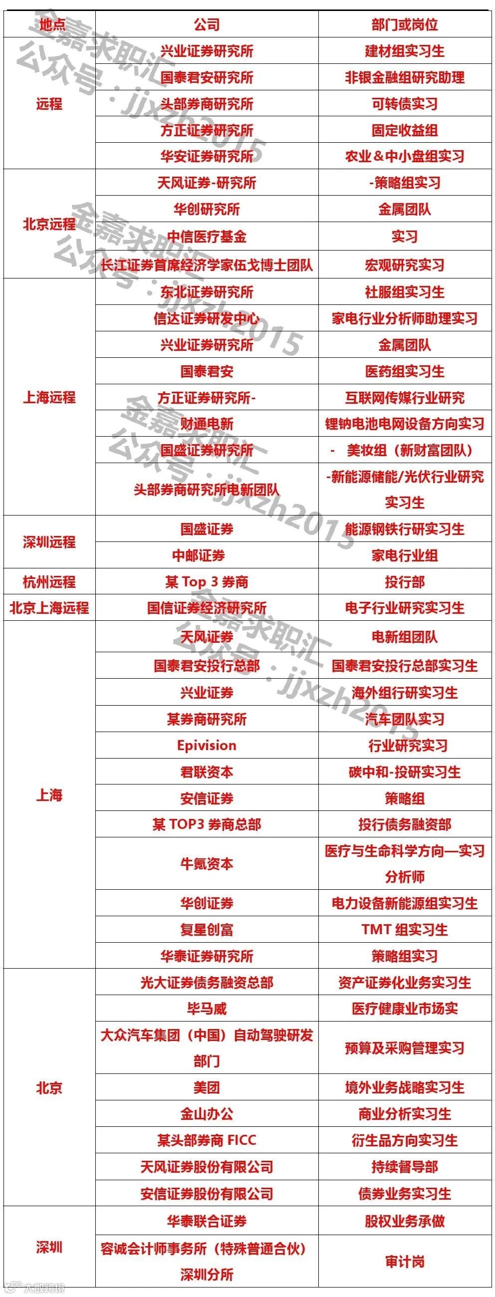 6. 有卖方研究实习经历、熟悉二级市场、热爱金融研究或有个人交易经验优先