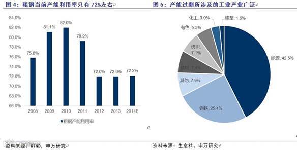 而回到我国,5000户工业企业设备利用能力指数显示出我国的产能过剩情况不容乐观,根据工信部13年的《工业信息业运行报告》,当前我国传统的钢铁、有色、建材、化工等行业已经产能过剩,并且过剩状况逐渐向光伏、风电等新兴产业拓展。