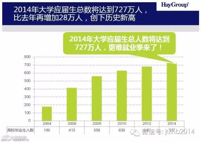 应届大学生数量由2013年的699万上升至727万的大背景下,今年进入就业市场的应届大学生数量将创历史新高,今年的应届大学生就业相比往年竞争会更激烈,情势更加严峻。我们将与你分享《2014年应届生薪酬与职业发展调研报告》中,入职、薪酬、离职与职业发展等调研结果。
