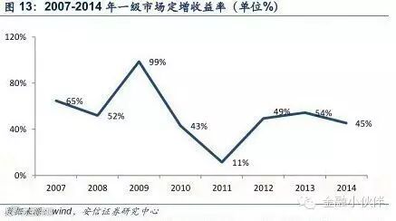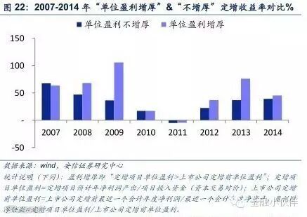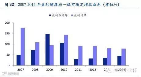 2007-2014 年,盈利增厚类上市公司一级市场定增收益率平均高达 94.4%,相较盈利不增厚的上市公司一级市场定增收益率 59%,高出 35.4 个百分点。