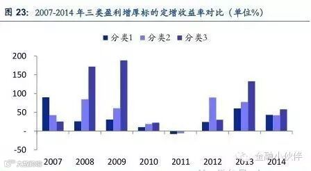 统计三类盈利增厚类上市公司定增收益率,2007-2014,分类 1、分类 2、分类 3 平均定增收益率分别为 44%、64.5%和 83.4%;分类 2 和分类 3 收益率显著高于分类 1。