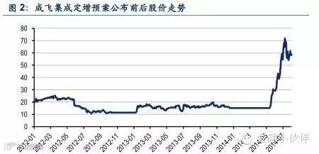 成飞集成 2014 年 5 月 19 日公布定增预案,截止 7 月底,最高涨幅达到 380.79%;其中,预案公告后连续涨停打开后涨幅达 170%。