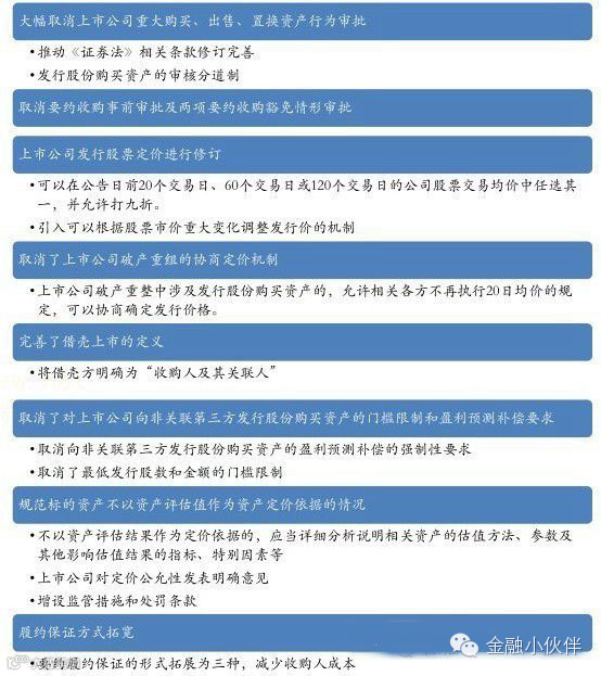 2014 年 7 月,证监会就修订《上市公司重大资产重组管理办法》(以下简称《重组办法》)、《上市公司收购管理办法》(以下简称《收购办法》)向社会公开征求意见。其中,主要修订的内容包括: