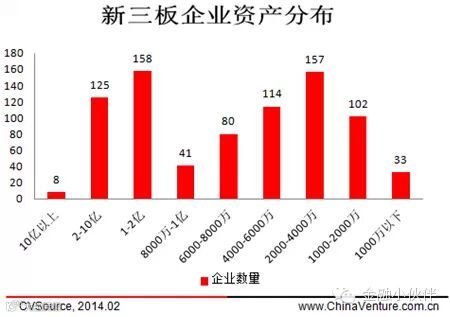 资产方面,过亿企业占到新三板企业总数的36%左右,其中湘财证券资产过百亿,超过创业板企业资产最高。云南路桥、现代农装、中科软等8家企业资产过10亿。资产1000万以下企业33家,其中中金网信、酷买网资产总额不足500万。营业收入方面,2013年度营业收入过亿者共7家,营业收入不足3000万者288家,占比35%。中科软以28.70亿位居第一,为创业板最高值得45%;最低东宝亿通年度营(微信号:jrxhb2014)业收入仅 6.80万元。