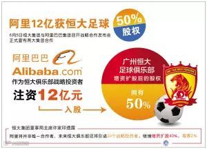 而恒大集团负责人则介绍说:这并非出售股权的行为,而是扩大股本的行为,阿里的12亿元资金只是注入以提升俱乐部的资金实力而已。”
