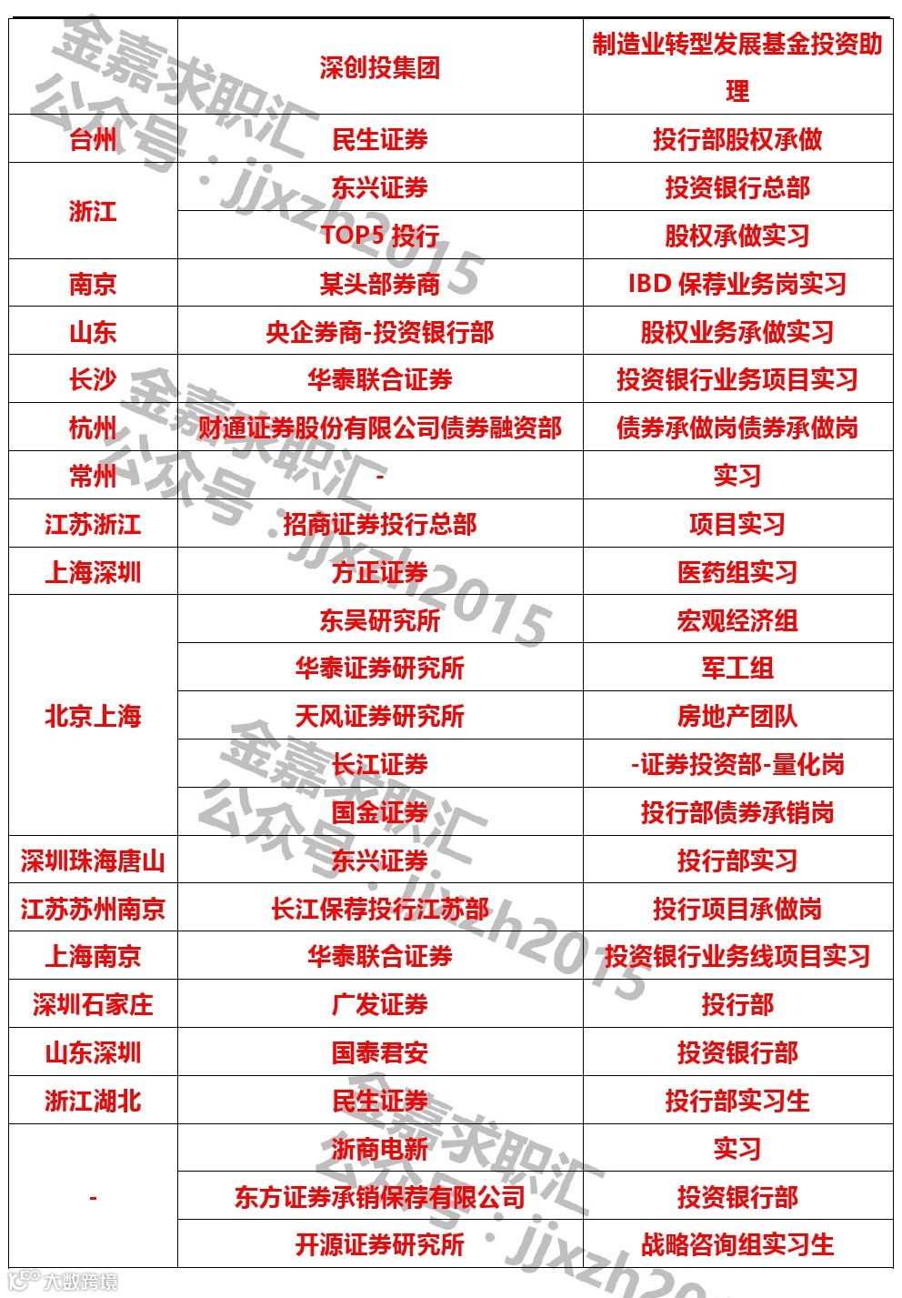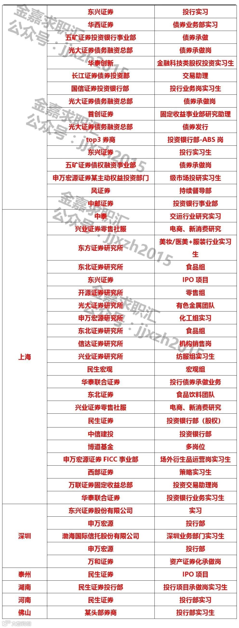 3、男女均可,要求具有良好的沟通能力、学习能力和较强的抗压能力,有过其它投行实习经历者优先;