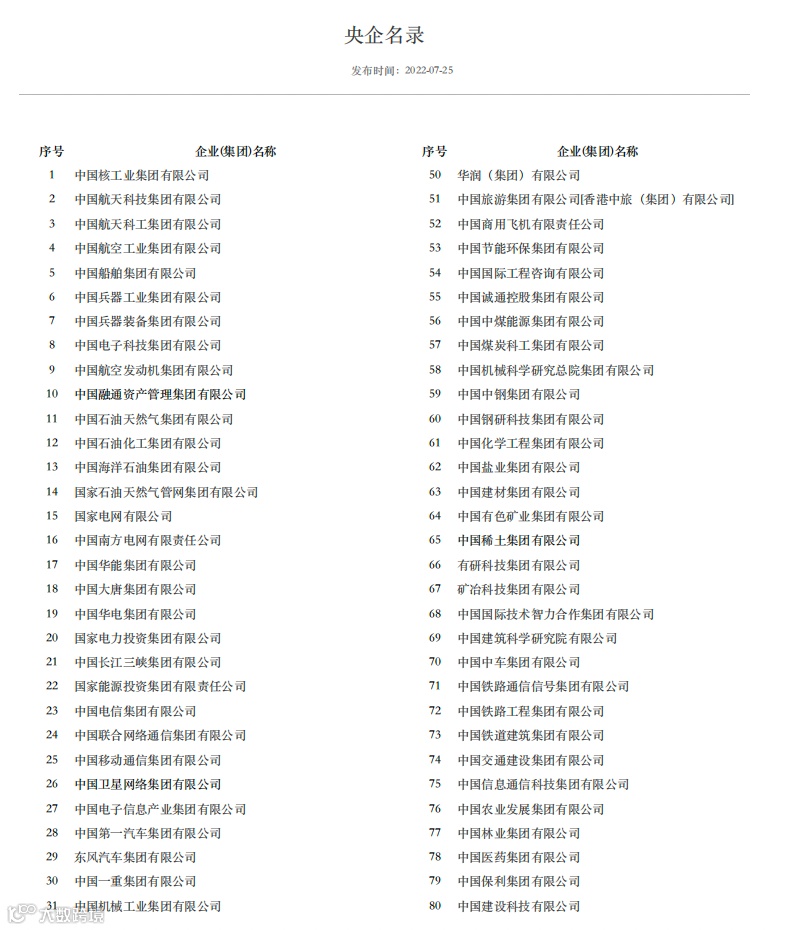 国务院国资委网站公布最新中央企业名录,共98家,相较于此前,新增了中国矿产资源集团有限公司。