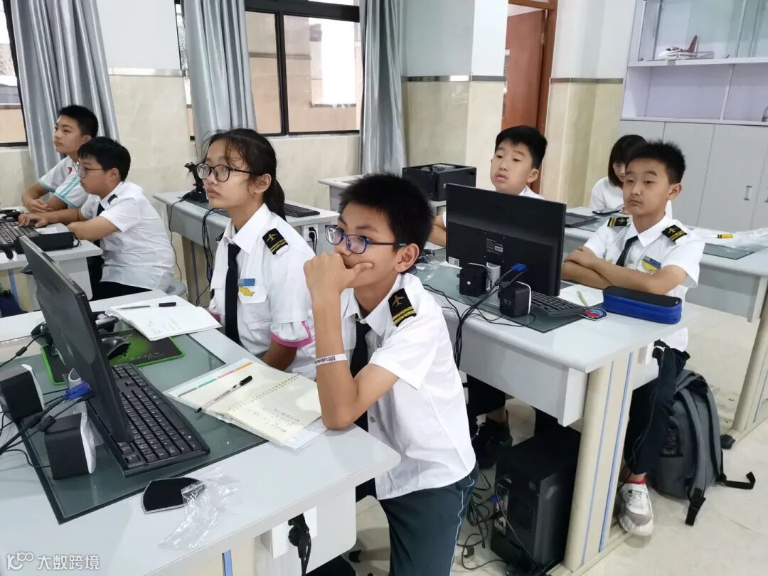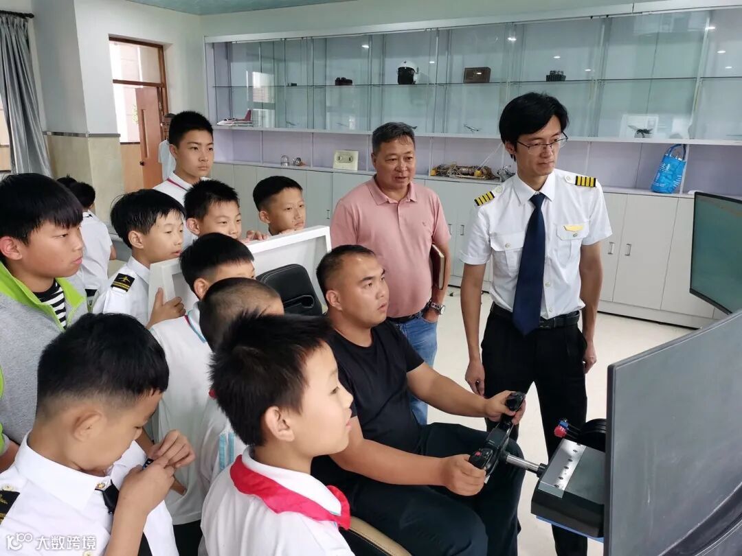 然后,仇老师带大家参观了正在飞行班上课的飞行社团的学生们,学生们着飞行服,每个学员胸前别着自己的铭牌,正在以飞行员的姿态认真学习模拟飞行技巧和航空知识。
