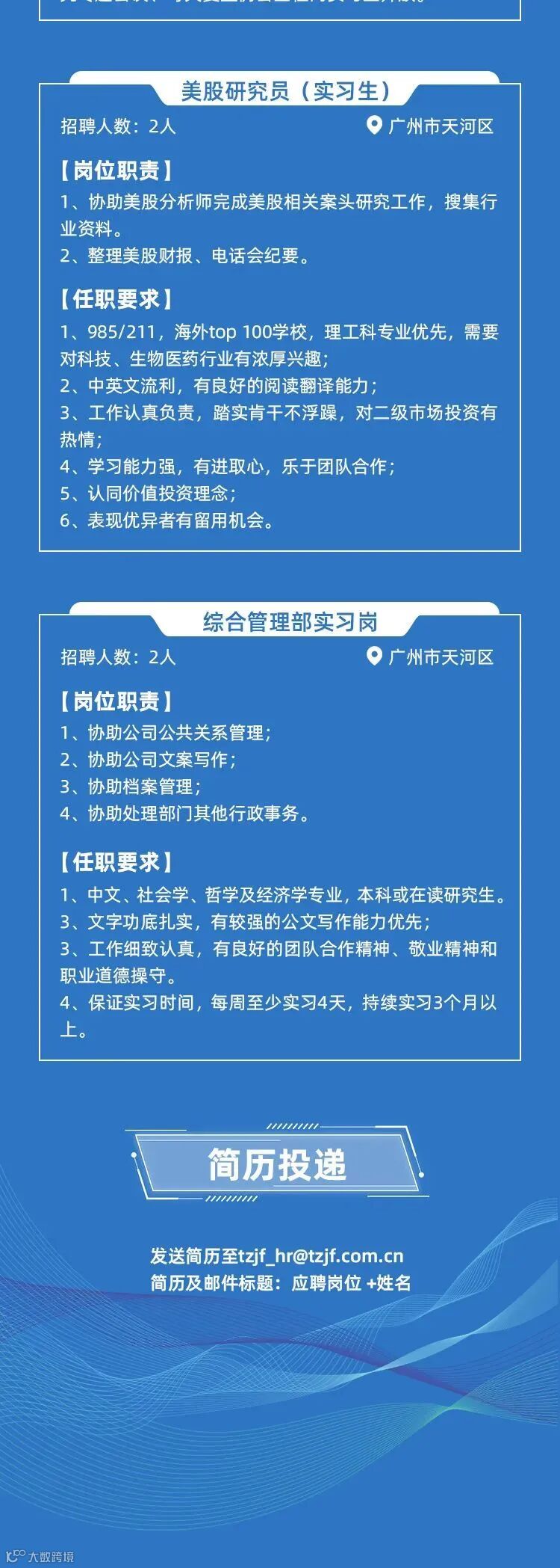 根据简历投递时间安排面试。有意者请发送简历邮箱:gfibd_intern@163.com
