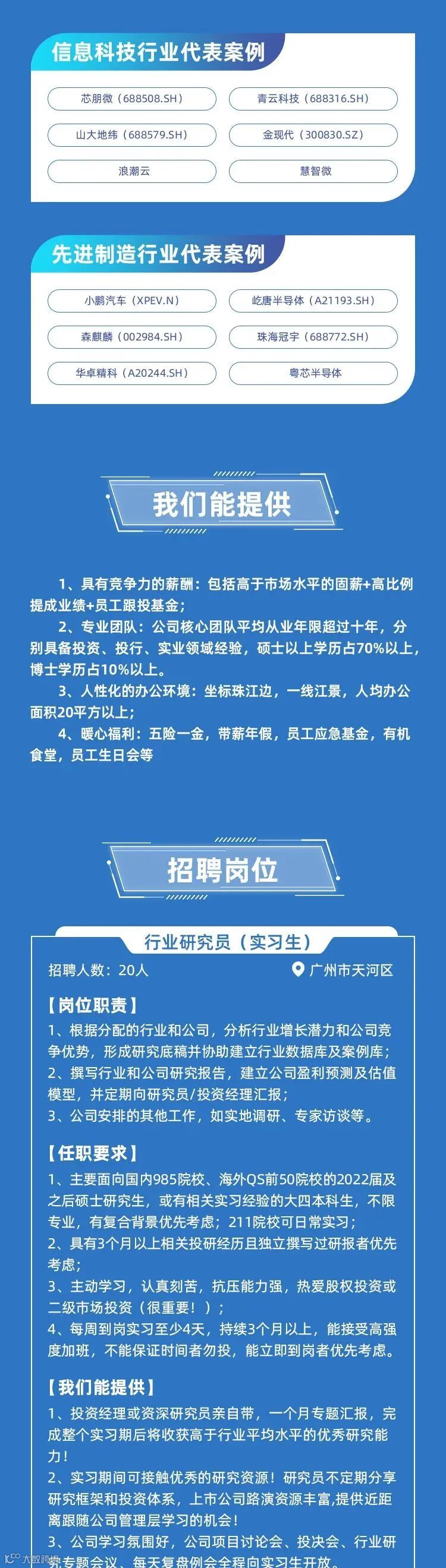4、实习性质属于日常实习目前暂无留用名额(应届生慎投),能在分析师指导下深入工作, 为未来求职做积淀。表现优异者如未来有留用机会优先推荐。
