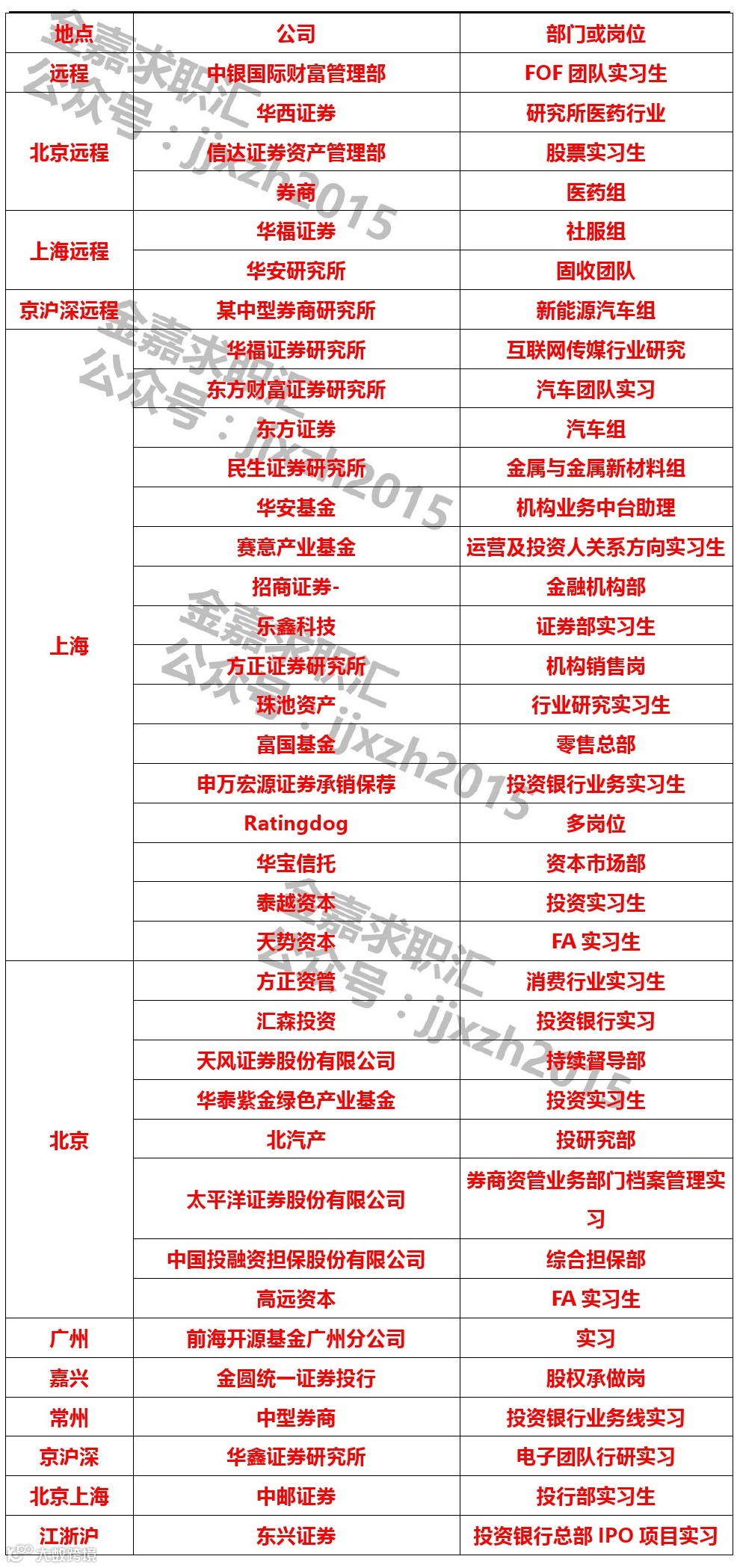 如需发布招聘信息直接发送至金融小伙伴(jrxhb2014)公众号后台,也可以添加工作人微信号(jzhecthu)联系发布,请备注“姓名+单位+发布招聘”!