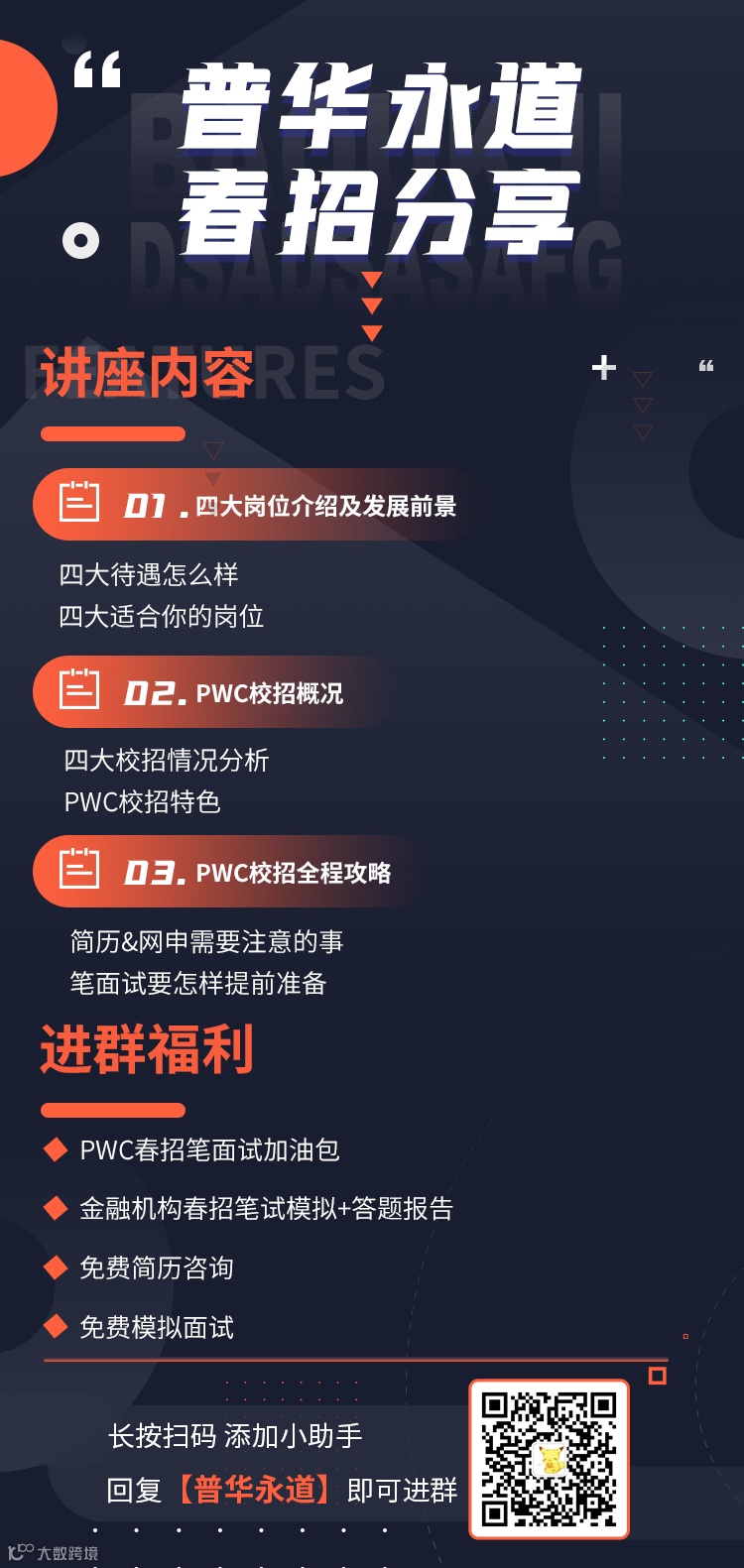 为了能让大家高胜率斩获普华永道的offer,金融小伙伴也为大家准备了免费的全方面的讲座。