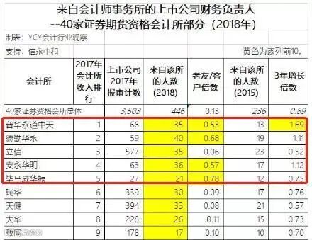在数据中能看到在上市公司担任CFO最多的是德勤华永,然后是安永华明、普华永道。