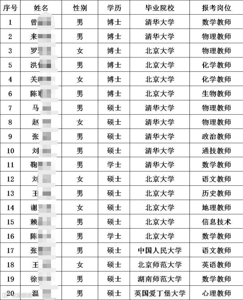 广深多所中小学公布的招聘名单几乎是清一色“清北”毕业生。