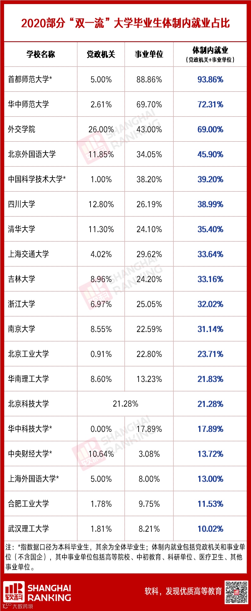 若加上进入国企的那部分,体制内的“双一流”毕业生群体将更加庞大。