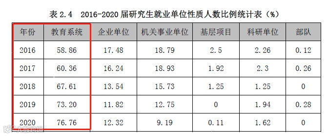 一些学校因为特殊的性质,进入体制内的占比极大。