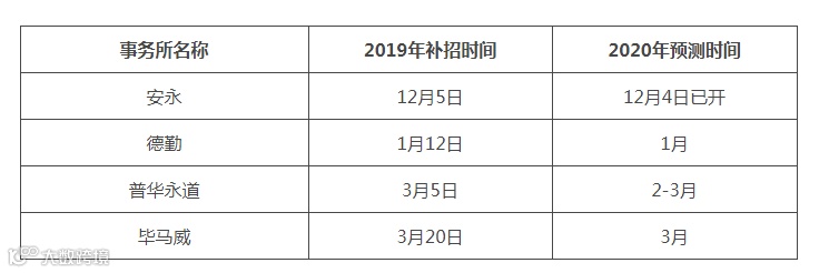 按照去年和以往的补招时间,我们可以大致预测一下四大在2020年的补招时间,一般情况,补招持续时间为半个月。