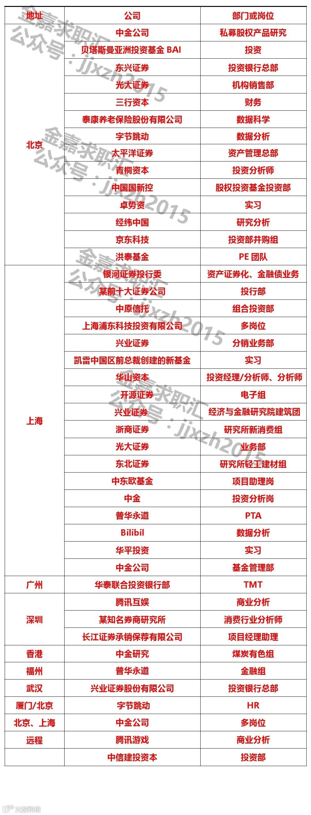 实习岗位:机构销售岗、ABS承做岗、投资助理、研究助理、合规风控助理等