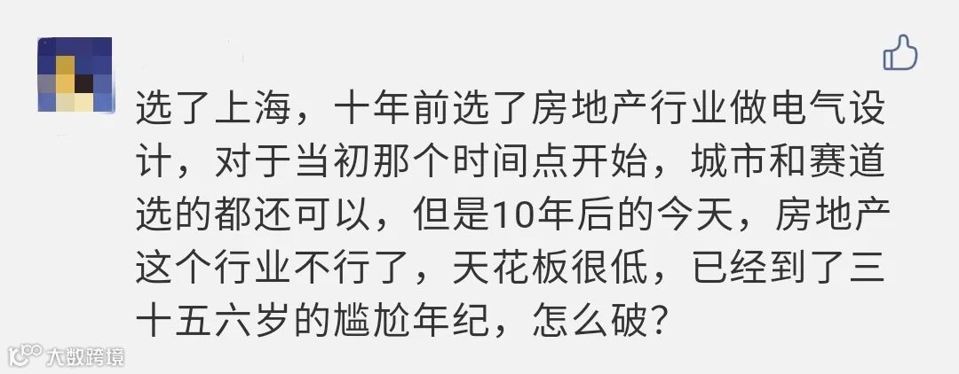 我文章留言区,也经常可以收到类似这样的留言,讲自己当年进的建筑行业,城市和赛道都选的不错,如今到了35岁的尴尬年纪,却面临行业不行了,天花板很低的问题,不知该何去何从。