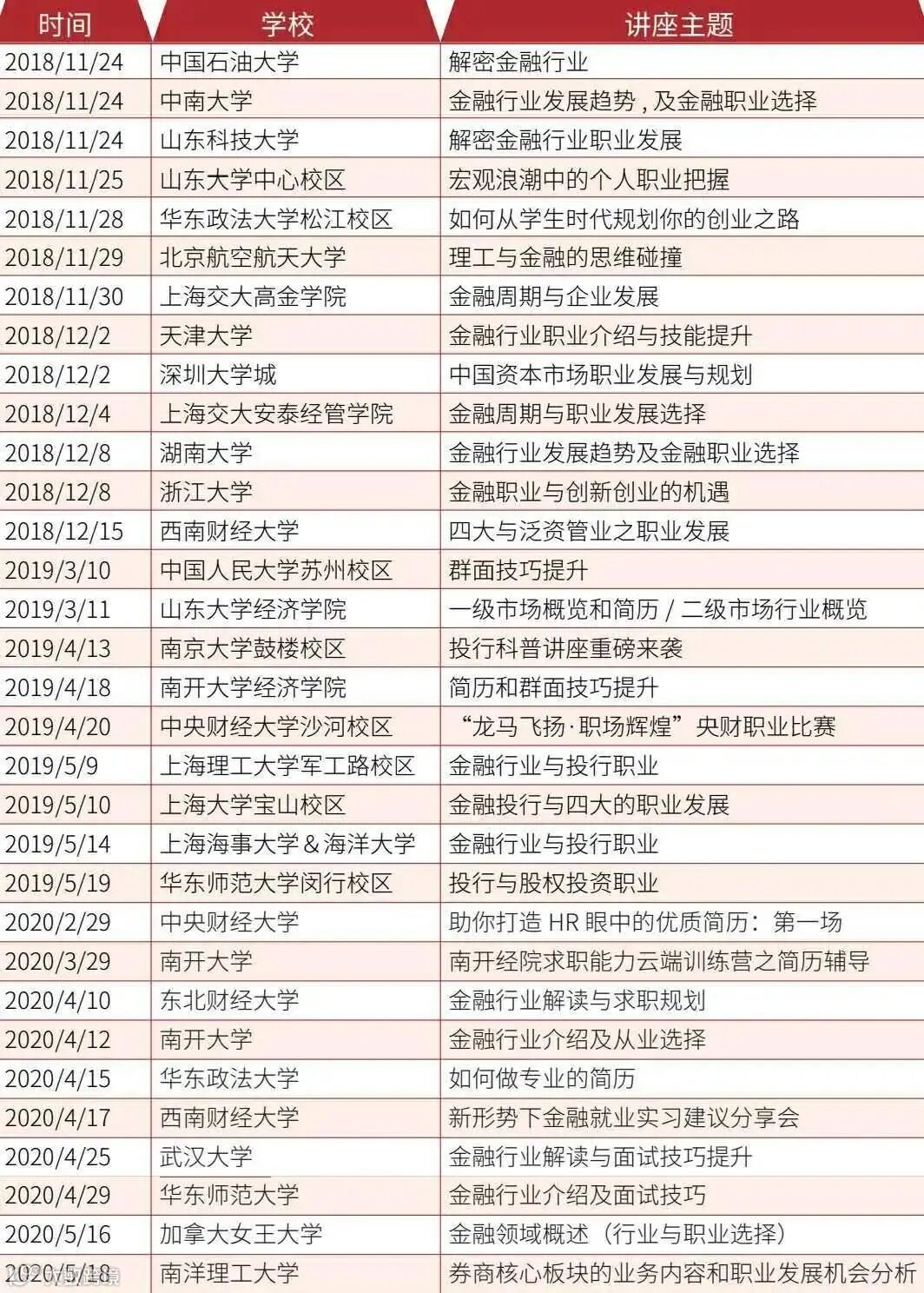 金融小伙伴六年来坚持支持各地学校职业发展,每年都会集中数次走进全国各大高校。