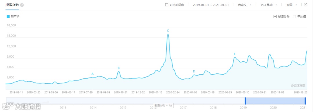 那时,互联网的日活跃用户规模、日均用户时长均创下历史新高,“剧本杀”百度指数较上一年同期都有了明显的增长,以至于到了一年之后,不少剧本杀类App仍在ios社交类榜单上排名前50。