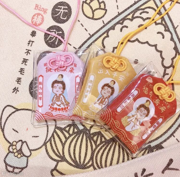 前两天和朋友去西湖边拍东西,看到好多人手里都拿着个粉红御守。