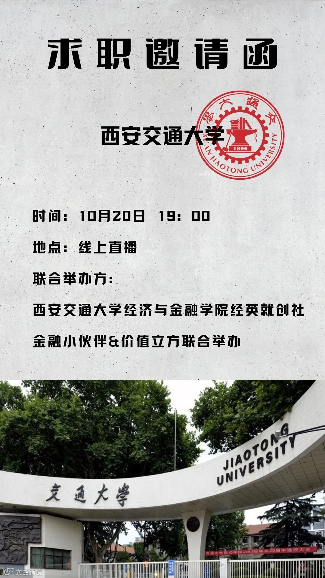西安交通大学经济与金融学院经英就创社专场将在10月20日举行。