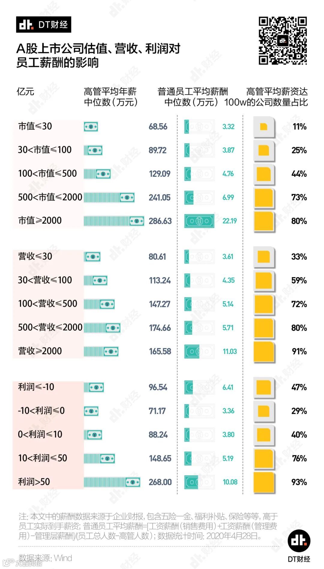 如果是在市值大于500亿元或是营收大于100亿元的公司当高管,那就有7成的概率能实现年薪百万的小目标。