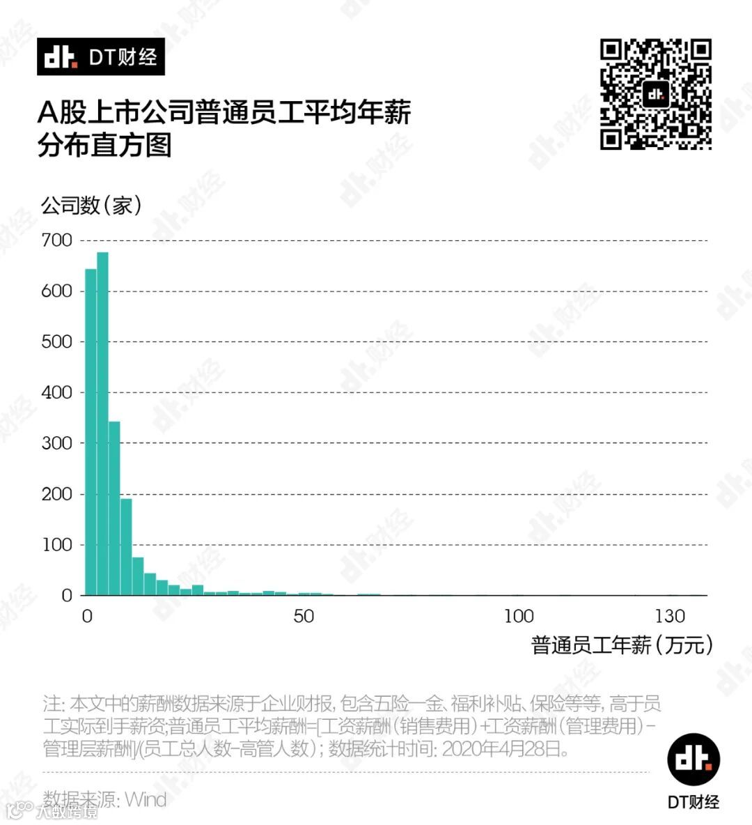 仅有19家公司的普通员工平均年薪超过50万元,其中就有17家属于金融行业