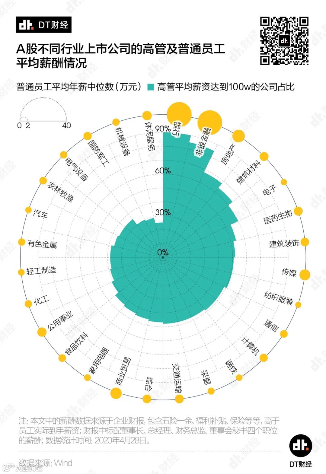 银行和非银金融的A股上市公司中,近9成公司的高管平均年薪超过百万,普通员工平均年薪的公司中位数也高达40万元。