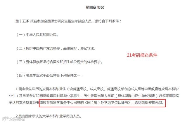 此外,还有一点值得注意,2021年考研大纲中,新增了留学生报考的条件:考生录取当年入学前(具体期限由招生单位规定)取得国家承认的本科毕业证书或教育部留学服务中心出具的《国(境)外学历学位认证书。报考资格的范围扩大,不仅有国内同学的竞争,更有来自海外的同龄人来“抢”机会。