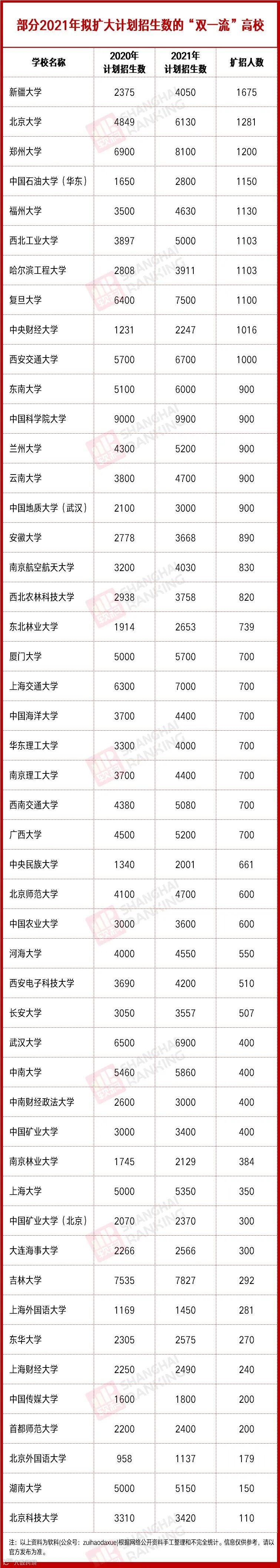 而从已经公布的2021年研究生招生简章的高校来看,已经确定扩大招生规模的学校有:
