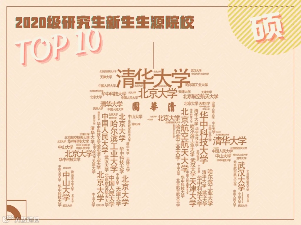 根据清华大学发布的的2020级硕士生新生来源,生源校人数TOP10依次是清华大学、北京大学、哈尔滨工业大学、华中科技大学、中国人民大学、北京航空航天大学、天津大学、武汉大学、中山大学、山东大学,均为一流大学。而其他顶尖名校的情况也大多如此。