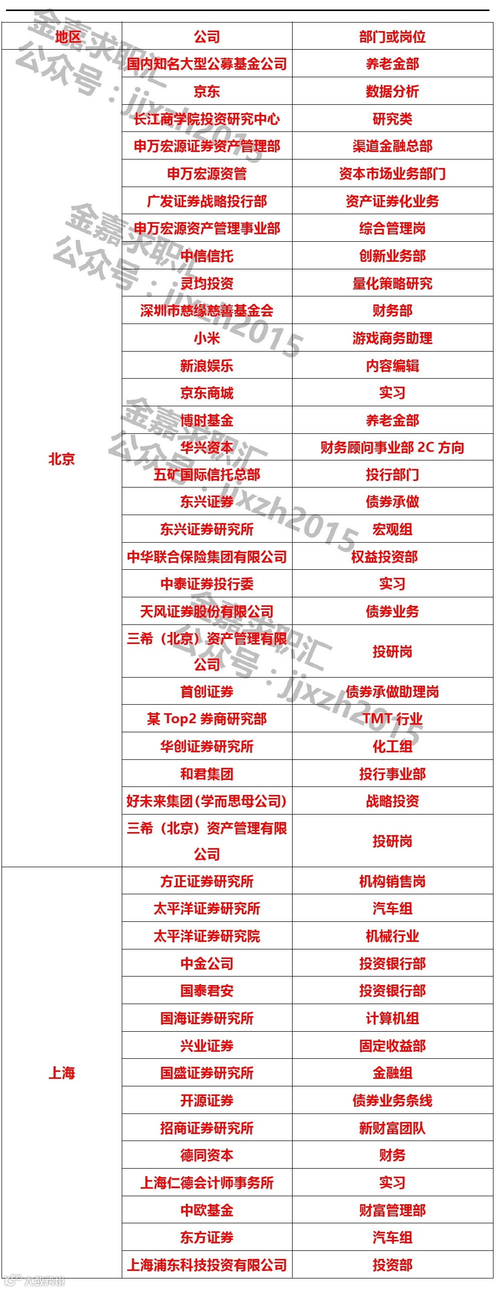 1、国内外知名高校金融、法律、财务等相关专业;大四或研一研二,有投行、信托实习经历者优先考虑