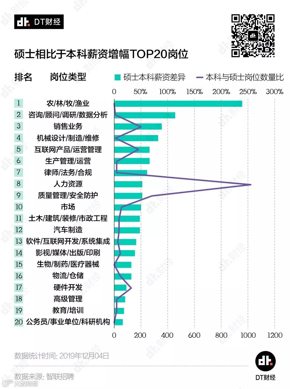 金融小伙伴career在考研这场大战中,有人一战上岸,学术生涯再延长两三年;有人初入职场坎坎坷坷,边上班边复习,想通过考研寻求职业生涯的转机;有人读完三年研究生后就业,发现本科同学成了上司。研究生学历能给职业生涯带来多大裨益?DT君曾经用数据详析过这个问题。2020年考研初试成绩陆续公布,今天,我们再为同学们来重温一下这段数据。