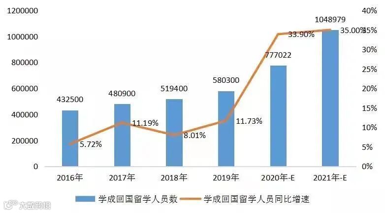 近两年,留学生回国求职人数连年攀升。据国家信息中心大数据统计,2020年海外留学生回国人数约是78万人,2021年首次超过100万,达到104.9万人。