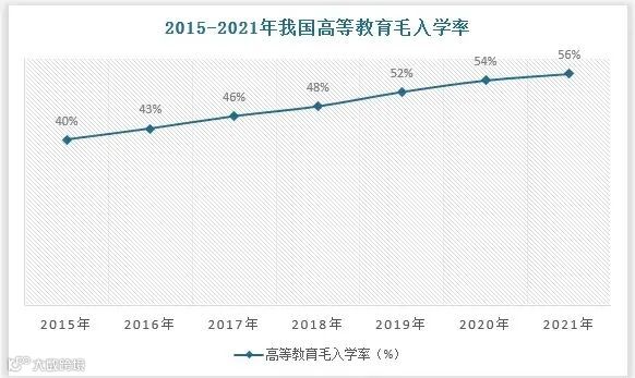 伴随适龄生源数量未来几年内的相对稳定和中长期的大幅减少,比如,2019年,新出生人口1465万,2020年新出生人口1200万,2021年1062万,可以预计未来高等教育毛入学率还将进一步攀升。