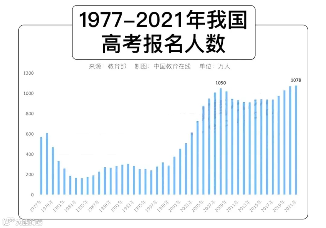 1、1977年以来高考报名人数的变化