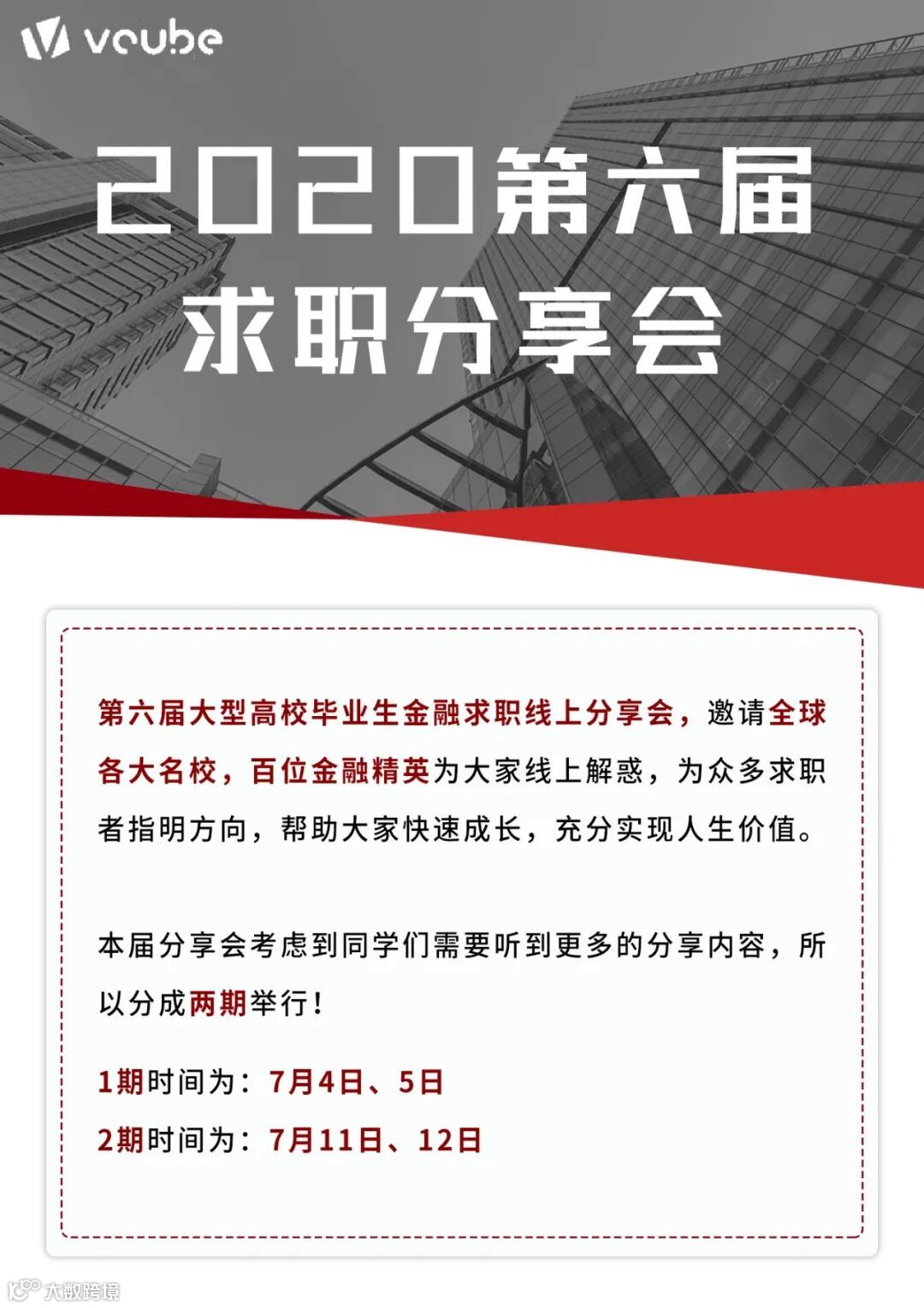 大型高校毕业生金融求职线上分享会已经迎来了第六个年头,每一届都会邀请全球各大名校,百位金融精英为大家线上解惑,为众多求职者指明方向,帮助大家快速成长,充分实现人生价值。